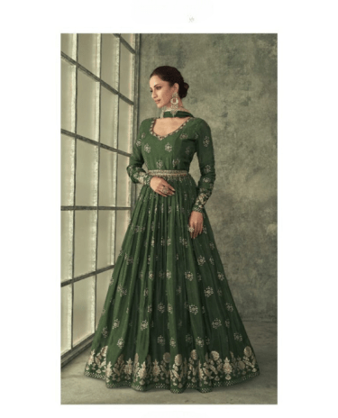 Dark Green Real Georgette Embroidered Gown