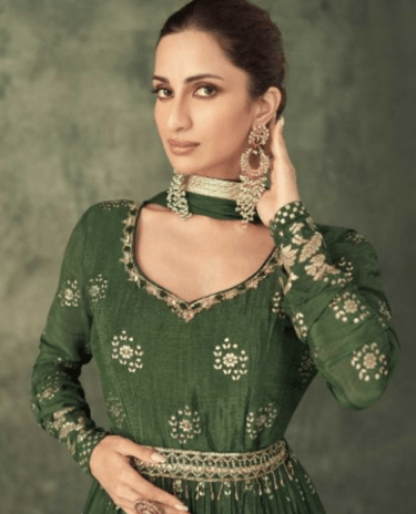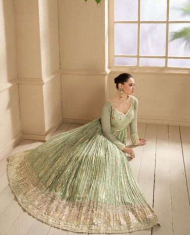 Green Bridal Anarkali Diamond Gown