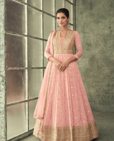 Light Pink Embroidered Georgette Anarkali Suit with Dupatta