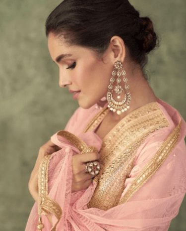 Blush Pink Heavy Chinon Silk Gown With Bottom and Dupatta