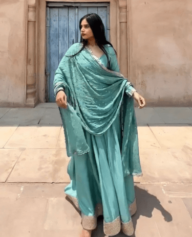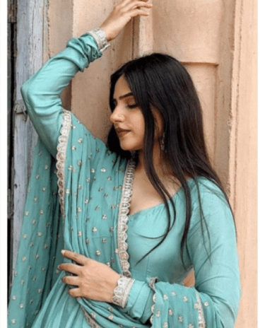 Turquoise Flared Georgette Anarkali Gown with Dupatta