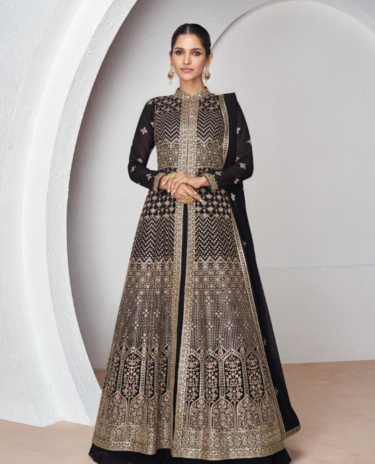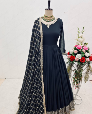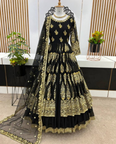 Black Heavy Fox Georgette & Embroidery Gown