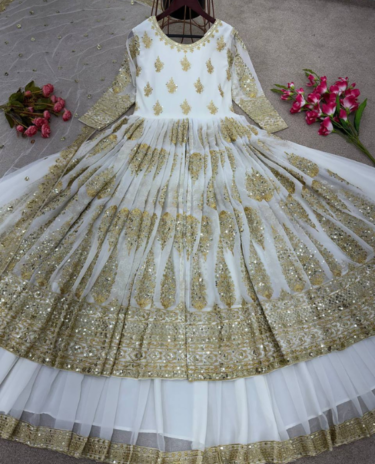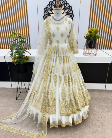 White Heavy Fox Georgette & Embroidery Gown