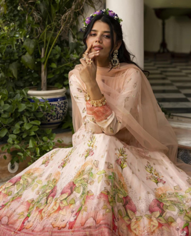 Soft Pink Real Chinon Colour Digital Print Flared Gown with Dupatta