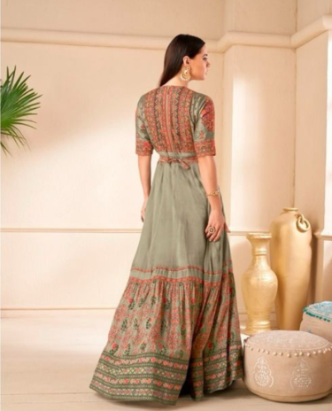 Green Color Pure Viscose Silk Gown