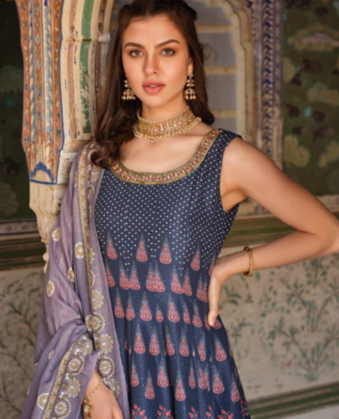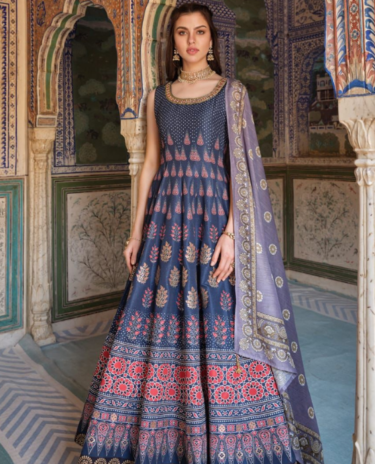 Blue Color Multi Embroidered Anarkali Gown