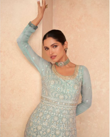 Light Blue Heavy Designer Georgette Embroidered Dresses