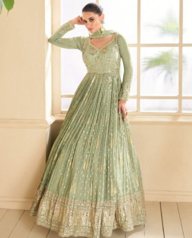 Pista Green Embroidered Georgette Gown with Dupatta