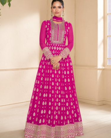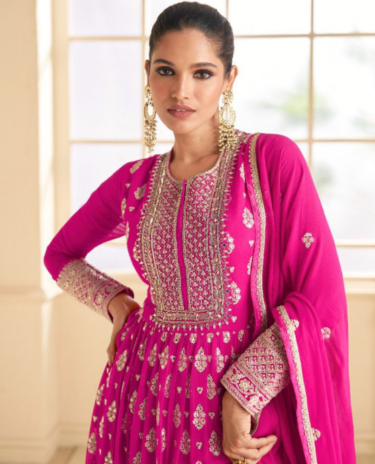 Dark pink Chinon Silk Anarkali Suit with Dupatta