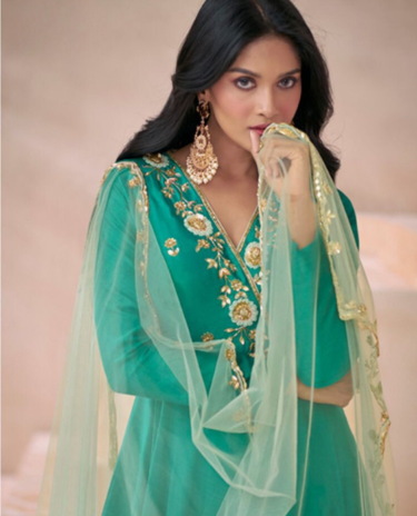 Dark Cyan Chinon Silk Anarkali Suit with Dupatta