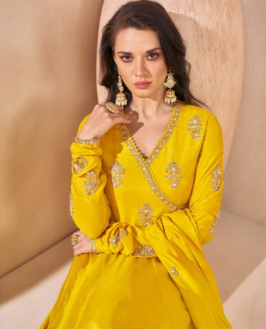 Yellow Chinon Silk Anarkali Suit with Dupatta