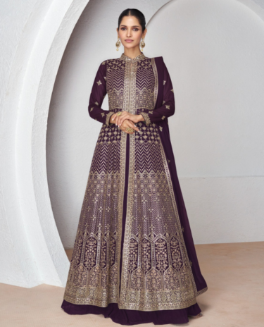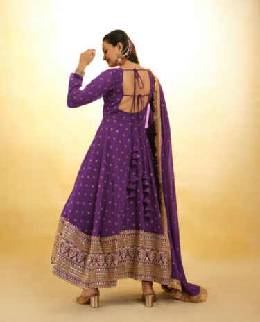 Purple Real Georgette Embroidered Gown