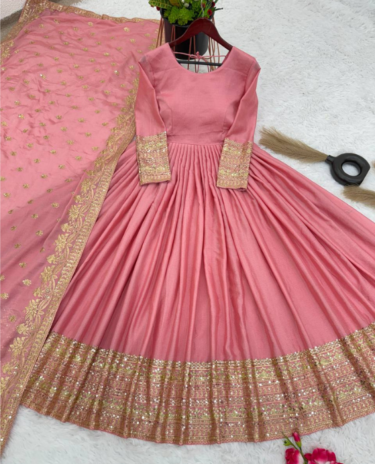 Pink Color Fox Georgette Embroidery Sequence Work Gown