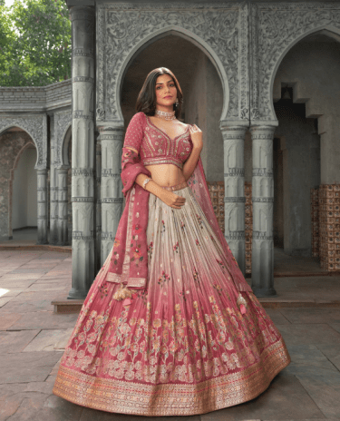 Rose Pink Color Banarasi Silk Wedding Lehenga