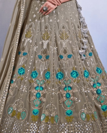 Olive and Grey Color Crap Jacard Silk Lehenga