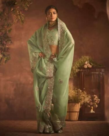 Pastel Greeen Organza Silk Embroidered Sequins Saree
