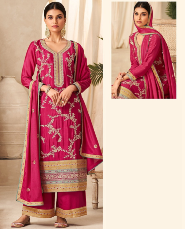Magenta Pink Color Chinon Fabric Readymade Palazzo Suit