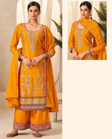 Mustard Yellow Color Chinon Fabric Readymade Palazzo Suit