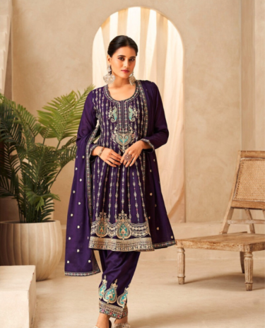Purple Color Chinon Fabric Readymade Suit