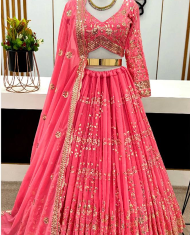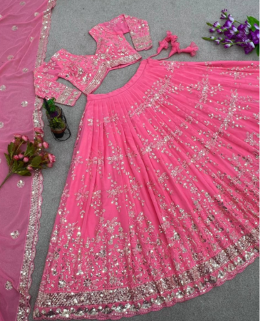 Blush Pink Faux Georgette With Heavy Embroidery Lehenga Choli