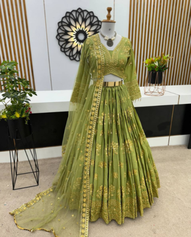 Light Green Faux Georgette With Heavy Embroidery Lehenga Choli