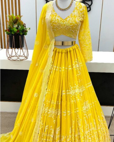 Yellow Faux Georgette With Heavy Embroidery Lehenga Choli