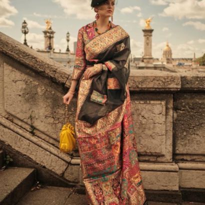 Black Modal Silk – Kashmiri Saree