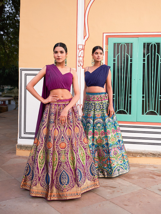 | Stiching | Blouse and Lehenga [+£45.00], Blouse stitching [+£40.00], Lehenga skirt stitching [+£20.00], No Stitch |