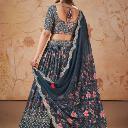 Blue Color Faux Georgette Lehanga