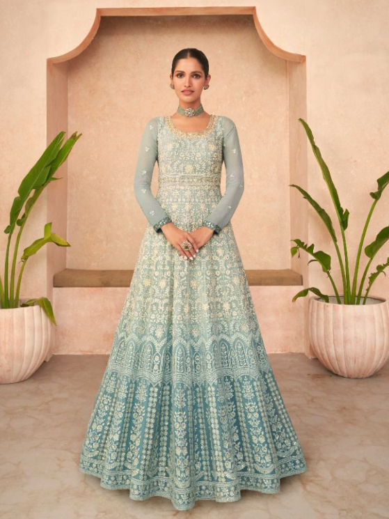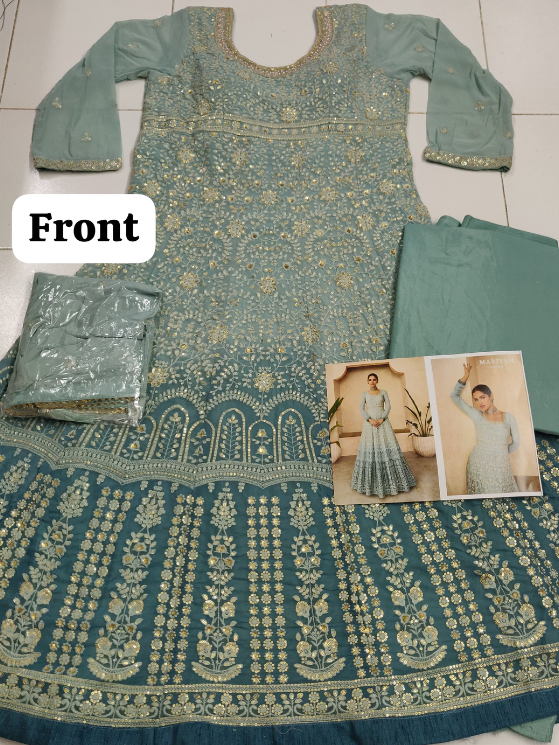 TOP :- HEAVY FOX GEORGETTE EMBROIDERY COTTON THRED WITH SEQVANCE