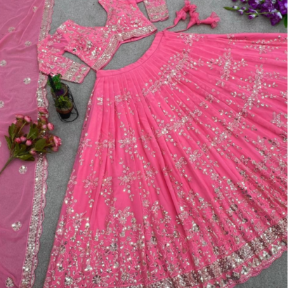 Lehenga Fabric : Faux Georgette With Heavy Embroidery Sequence Work*