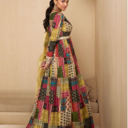Colourful Digital Printed Faux Georgette Gown With Dupatta