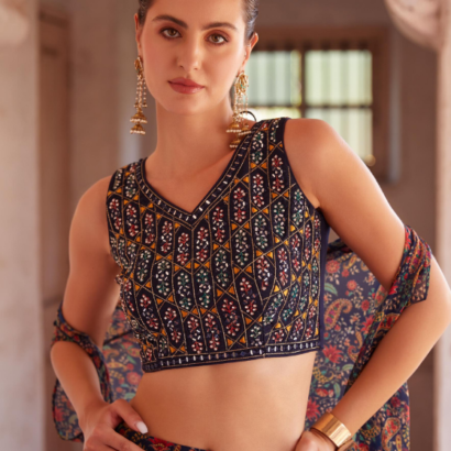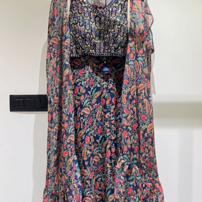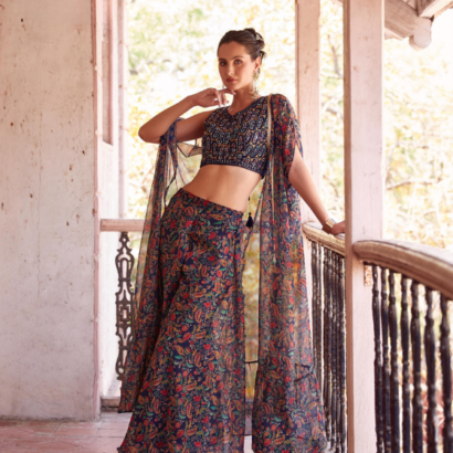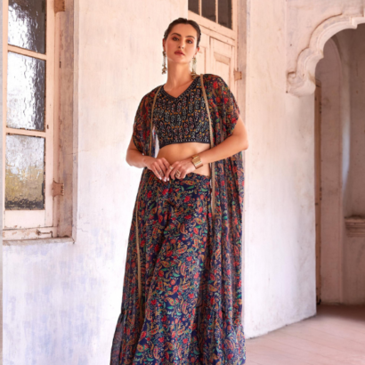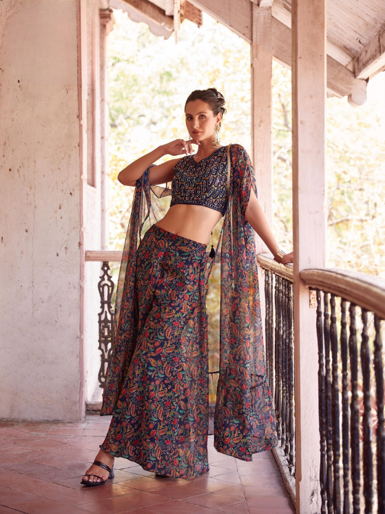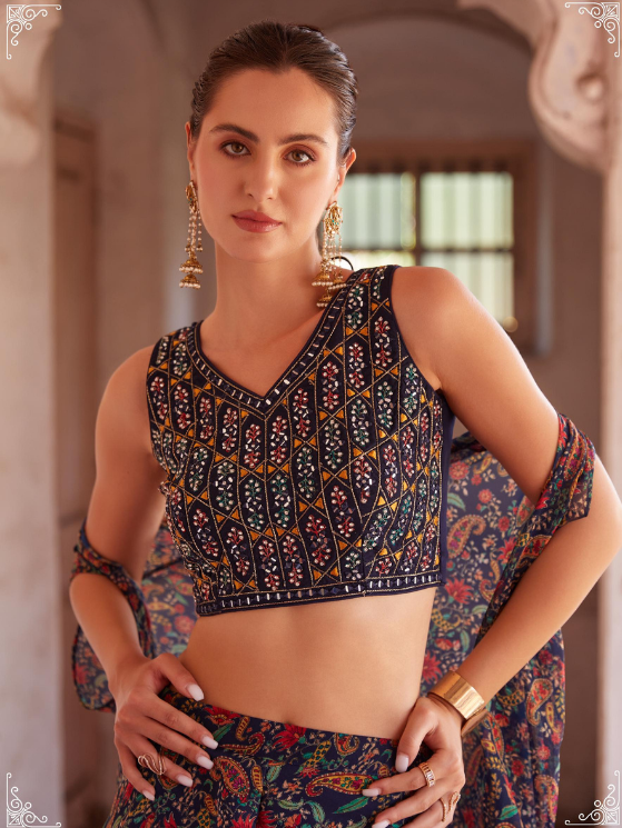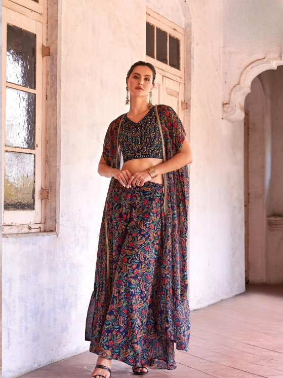 Dark Blue Sharara and choli georgette Indo western