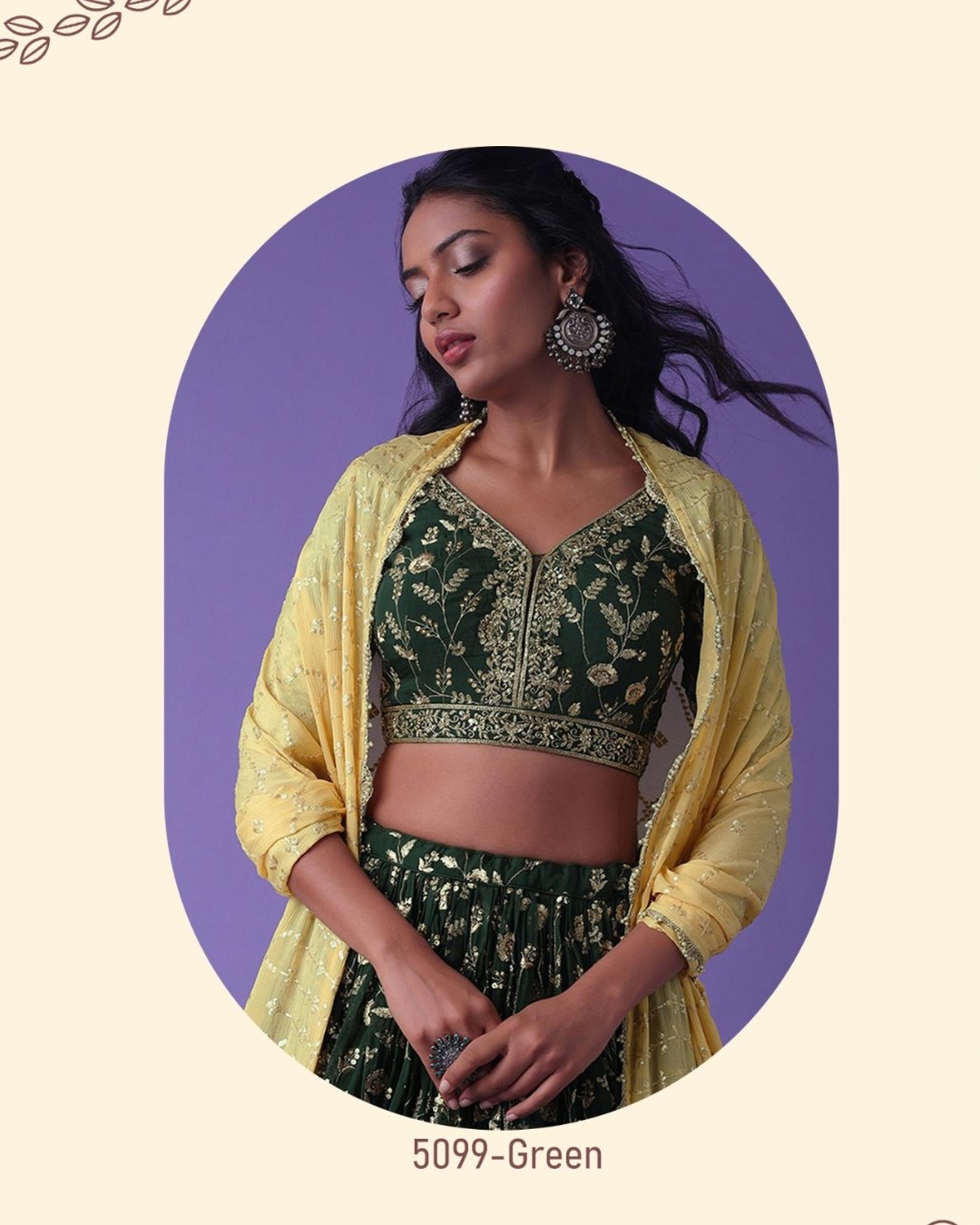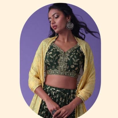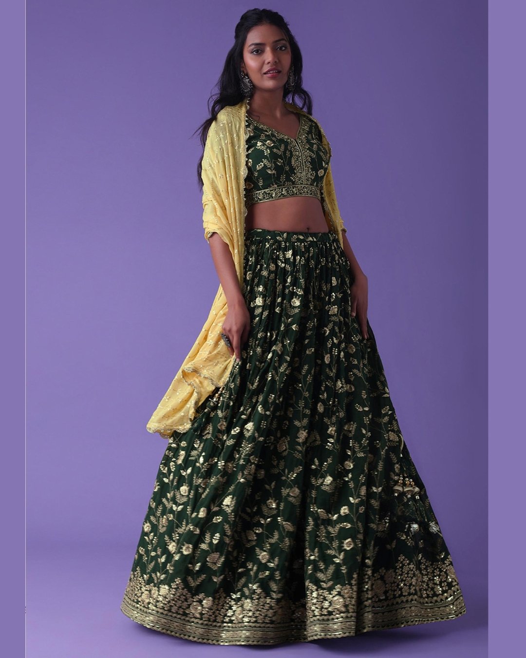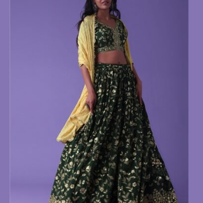 Dark Green & Yellow Summer Festive & wedding Style Embroidered Lehenga Choli