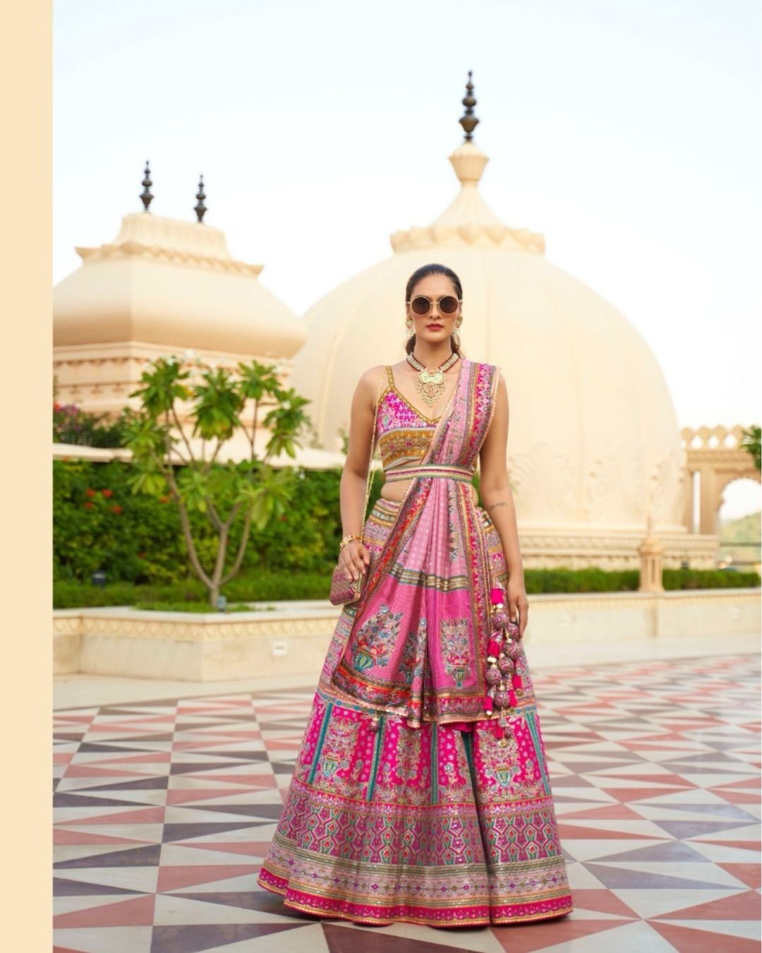 Dark pink Color Pure Smooth Rajwadi With Sparkle N Mirror Work Silk Lehenga