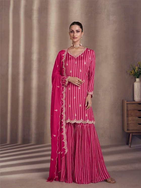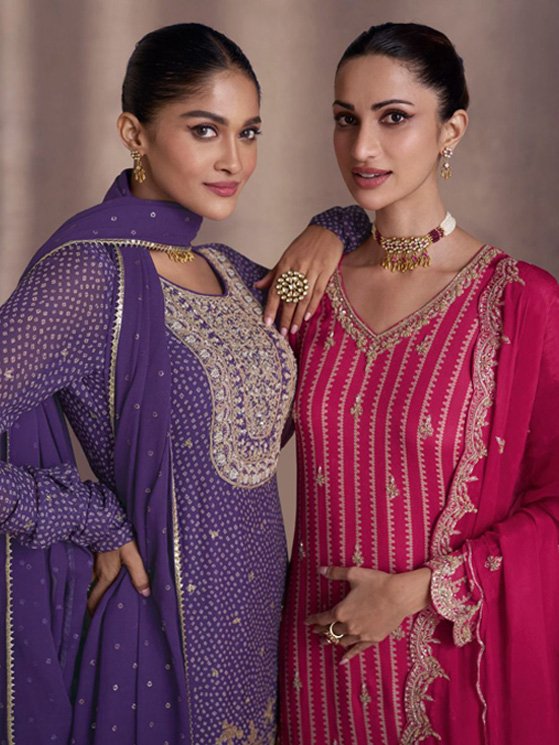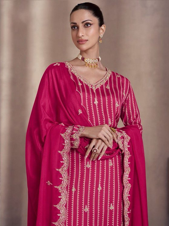 Dark Pink colour Embroidered Georgette Pakistani Suit