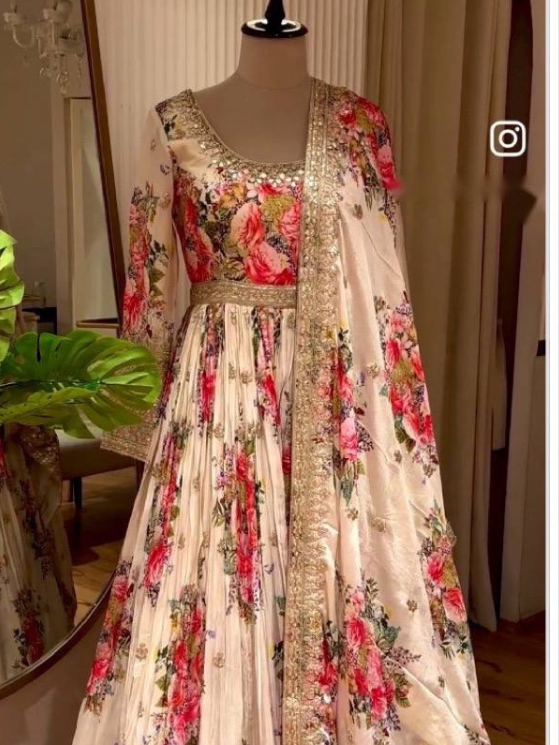 💃Gown Fabric : Heavy Satin Silk With Digital Print With 5mm sequence Embroidery Work With Full-Sleeve With (Attached Paid)