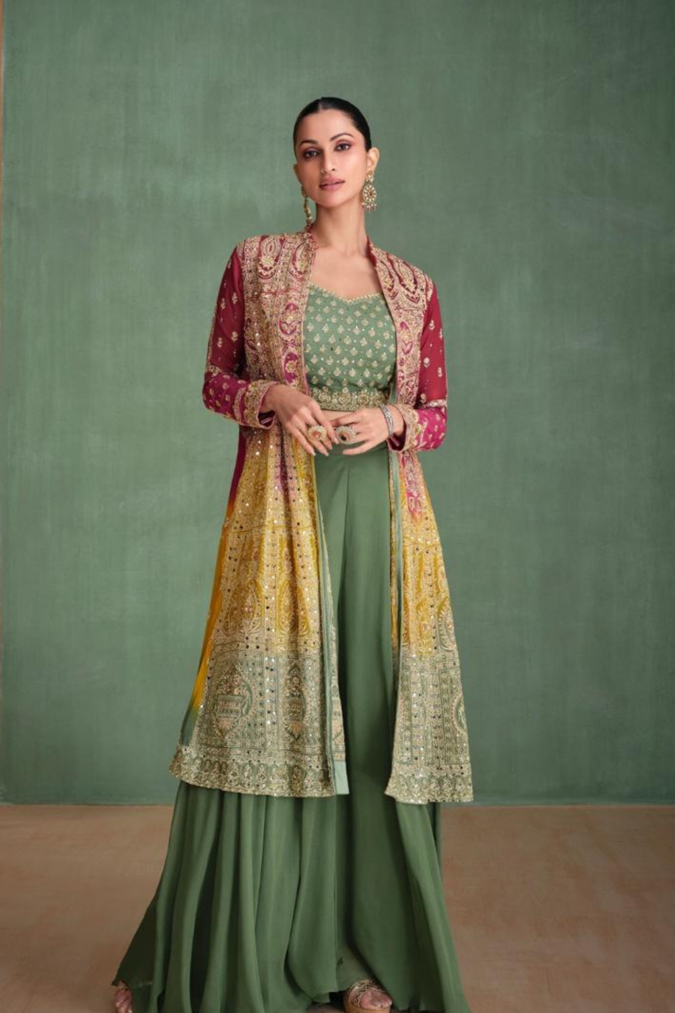 Be the first to review “FULL HEAVY LOOK EMBROIDERED WORK FRONT AND BACK WITH ALL OVER HAND EMBELLISHED MIRROR WORK”