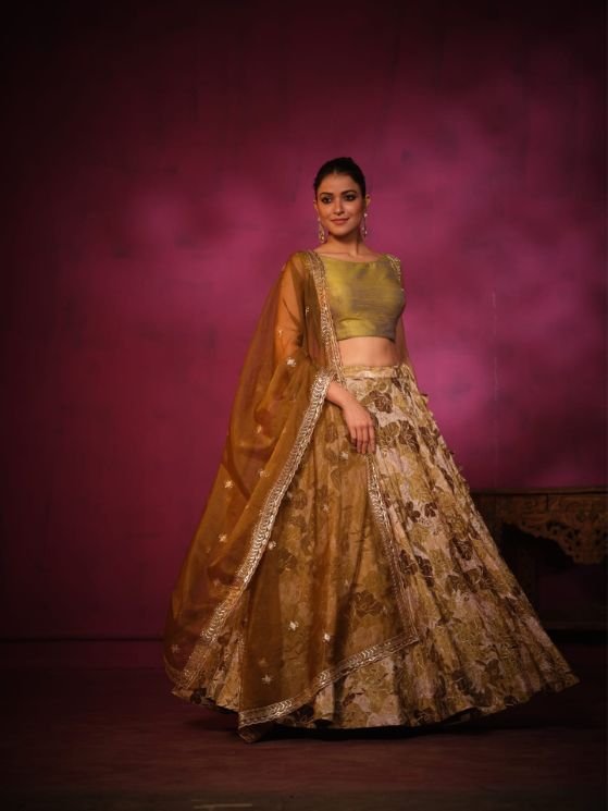 Golden Brown Printed Lehanga