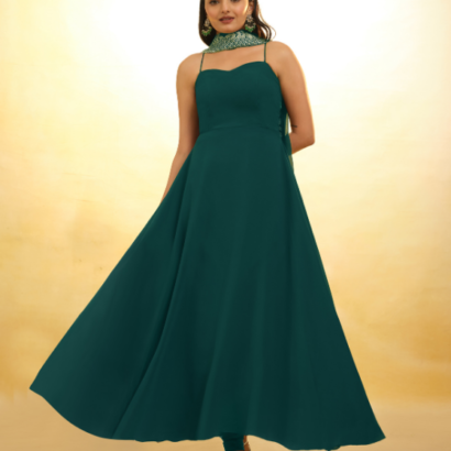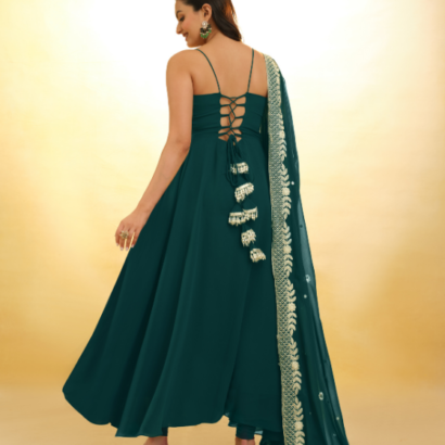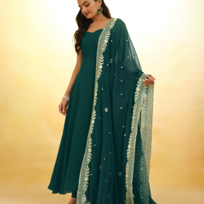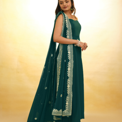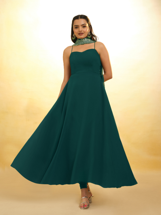 Green Colour Embellished Flared Kurta & Pants with Dupatta