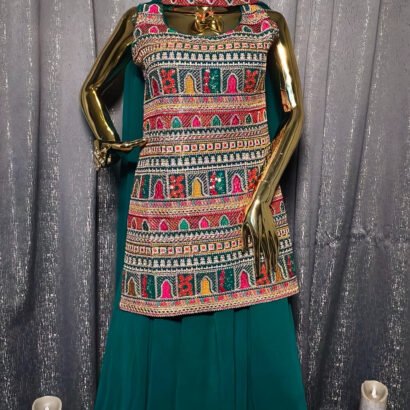 Be the first to review “Green Colour Thread Embroidered Beautiful Kurta with Georgette Sharara and Dupatta”