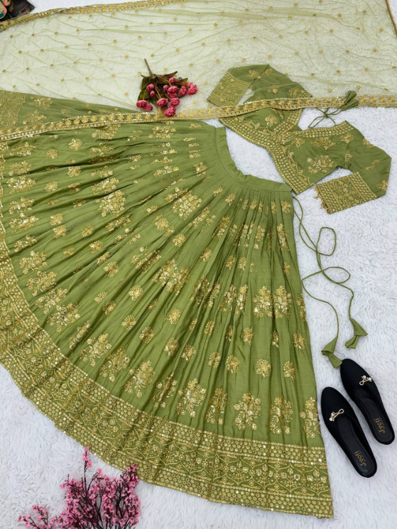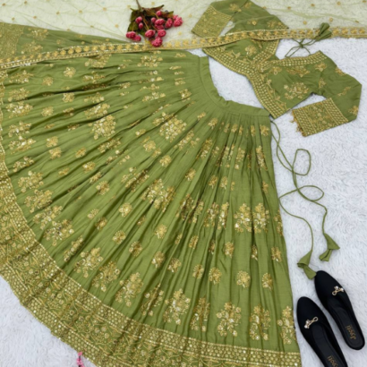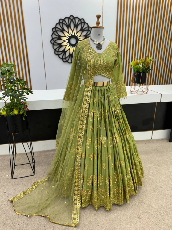Light Green Faux Georgette With Heavy Embroidery Lehenga Choli