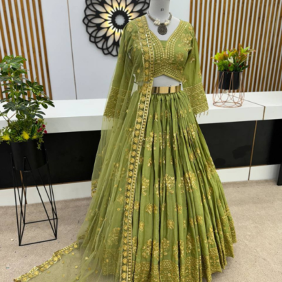 Lehenga Fabric : Faux Georgette With Heavy Embroidery Sequence Work*