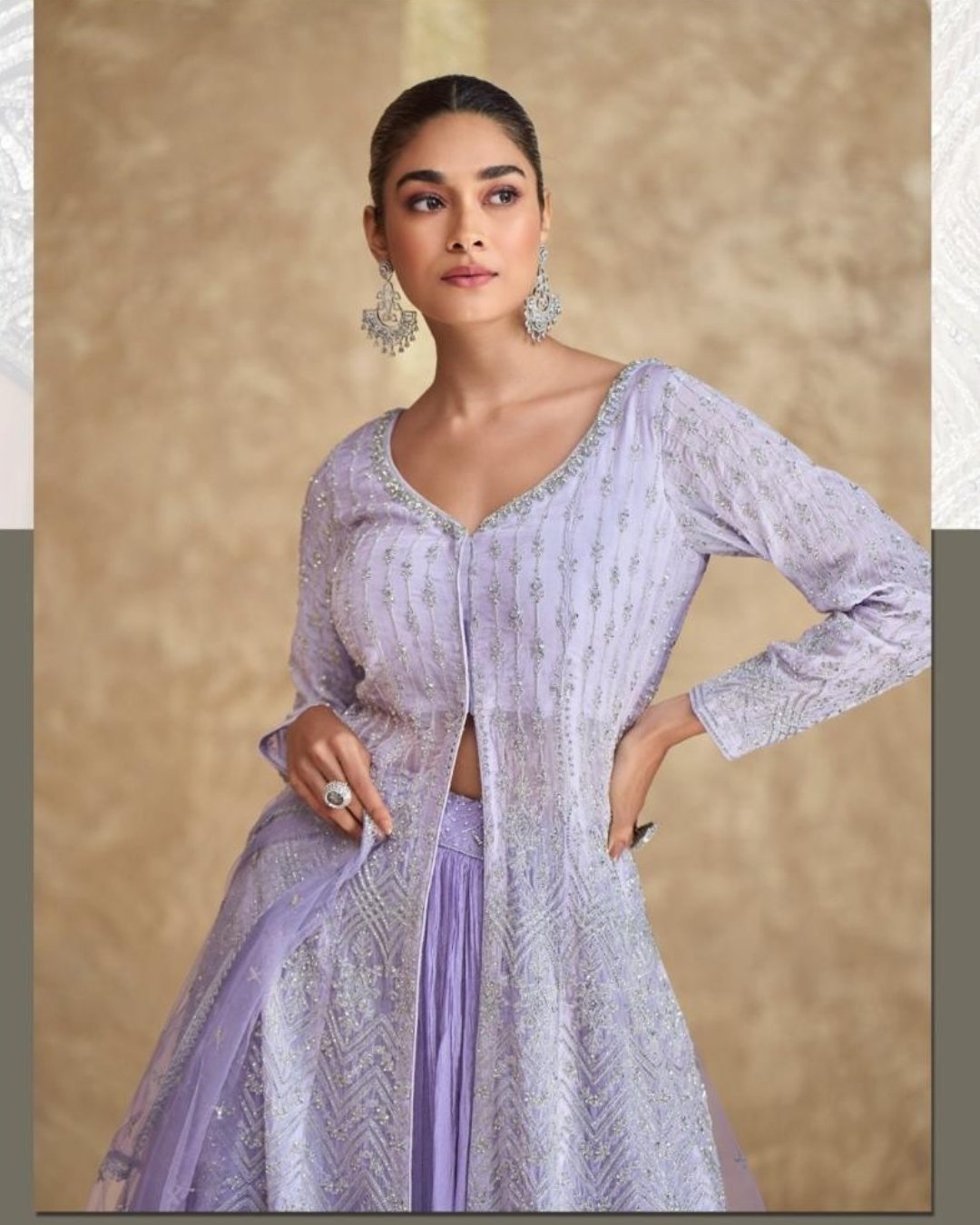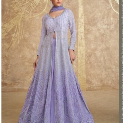 Light Lavender shaded Silk Embroidered And Sequins Indowestern Jacket Lehenga Wedding Wear