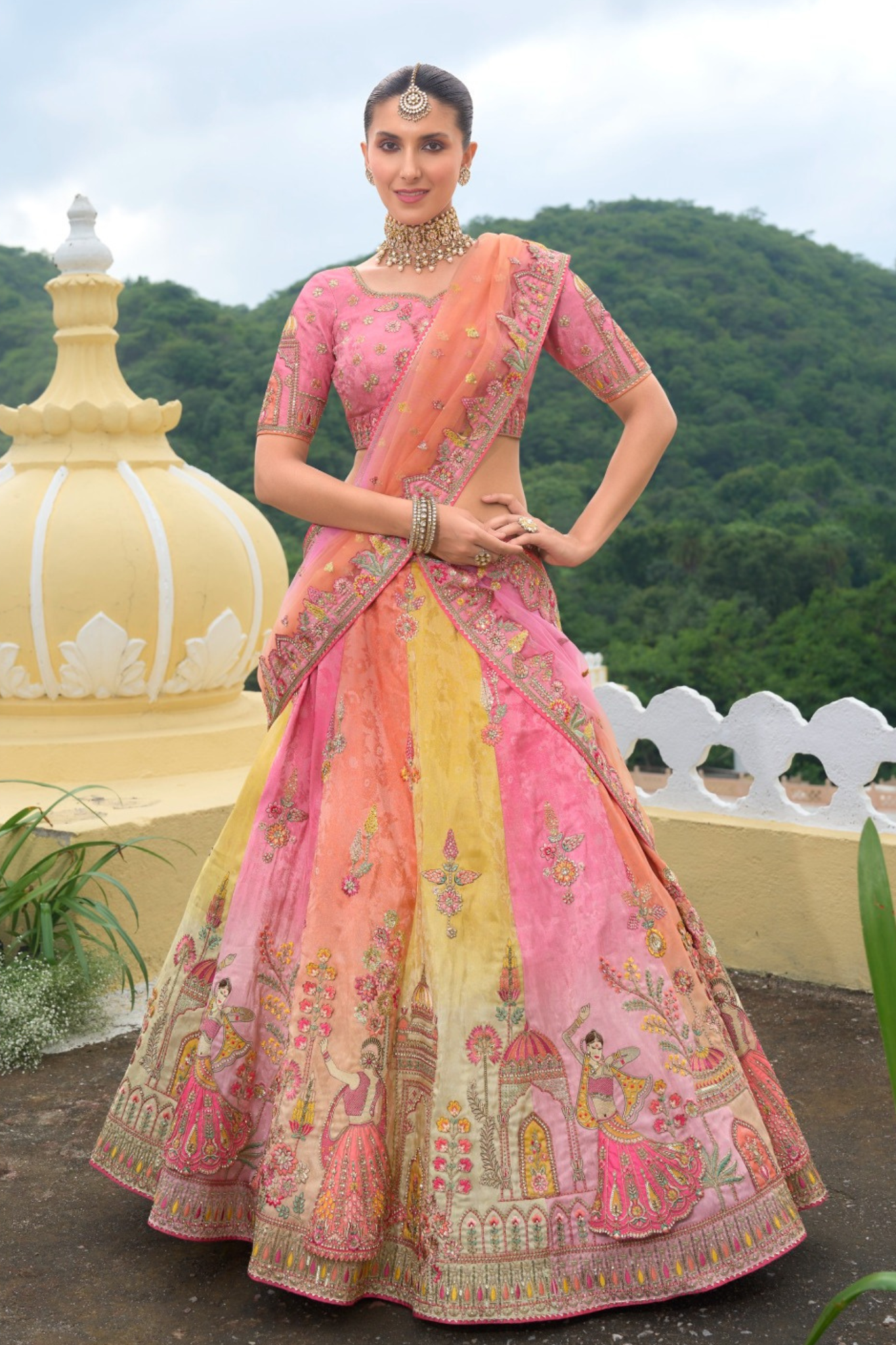 Multi Colour Embroidered Sequins Silk Lehenga Set