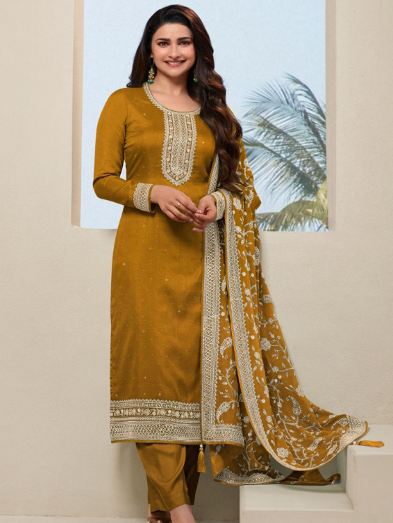 Musturd Thread Embroidered Suit