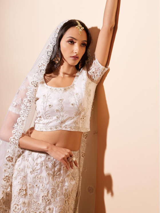 Off White Hand Embellishments Lehenga Choli