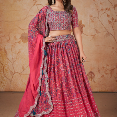 Be the first to review “Pink Color Faux Georgette Lehanga”