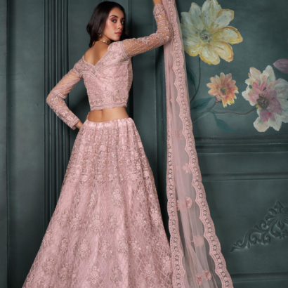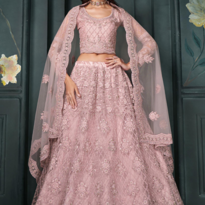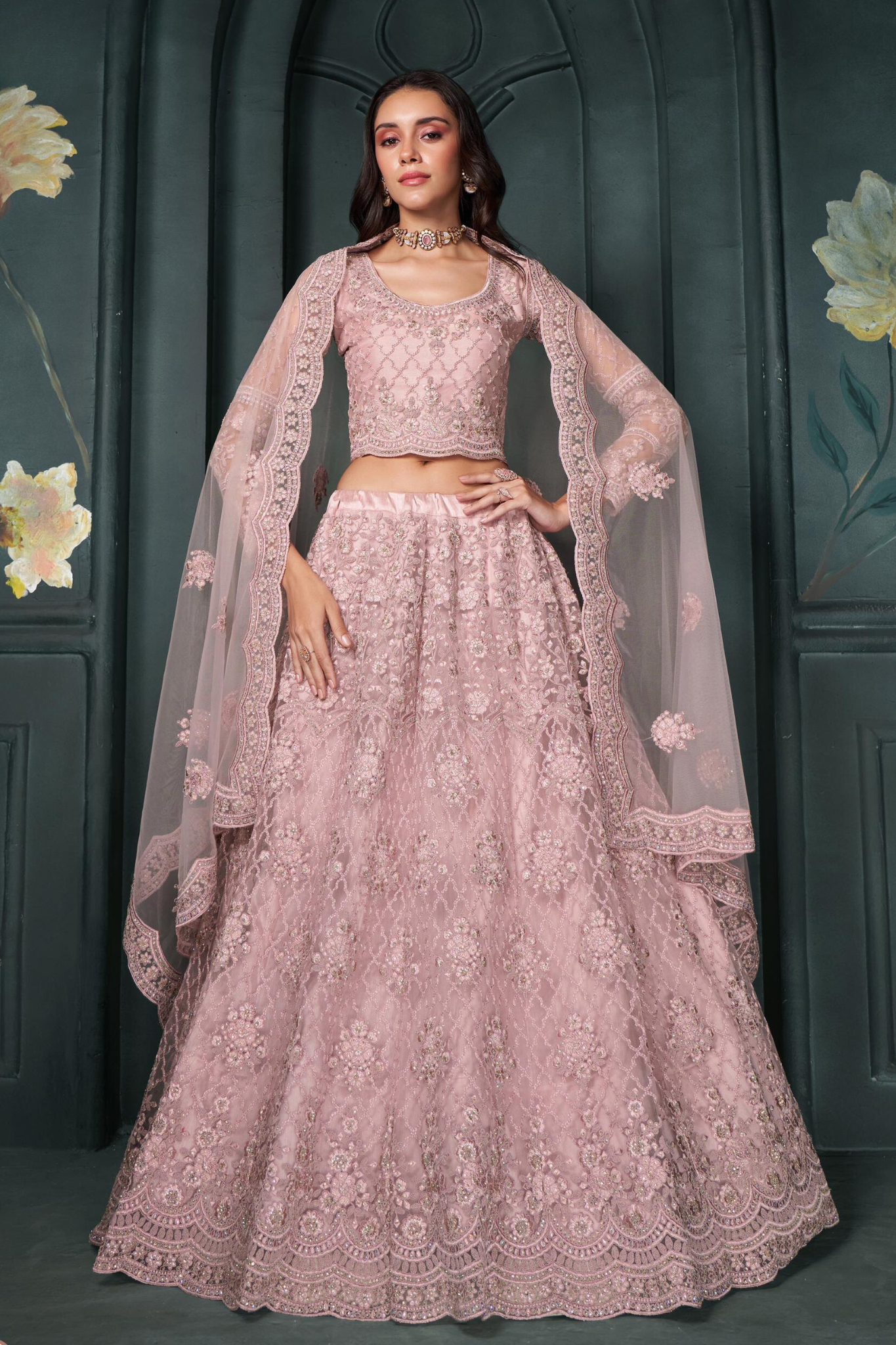 Pink Colour Net Lehenga Featuring Exquisite Stone Embroidery