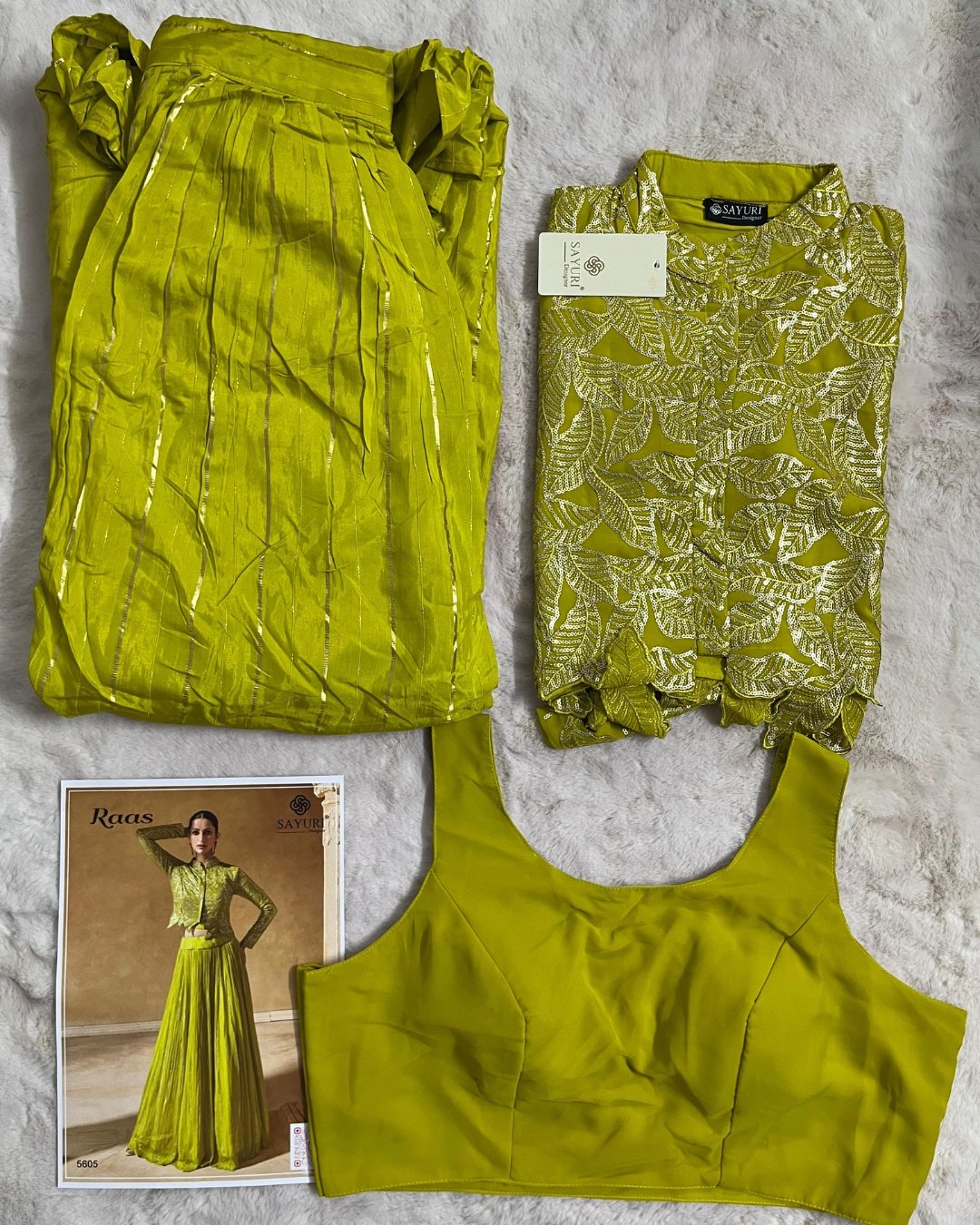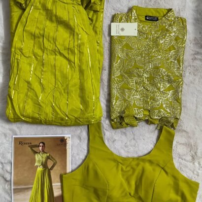 Pista Green Silk Embroidered Blouse with Viscos Lehanga front and back Work With Embroidered Dupatta